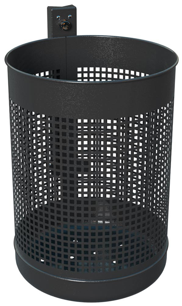 ∙ Gefertigt aus Stahlblech ∙ Gelochter Korpus ∙ Geeignet zur Wand- und Pfostenmontage ∙ Volumen ca. 20 oder 50 l ∙ Behälter-Ø 265 oder 370 mm, Höhe 410 oder 520 mm ∙ Gewicht inkl. Befestigungsschiene ca. 4,0 oder 5,5 kg ∙ Erhältlich in feuerverzinkt oder feuerverzinkt und zusätzlich pulverbeschichtet ∙ Lieferumfang: Abfallbehälter, Befestigungsschiene und Schlüssel (Befestigungsmaterial siehe Zubehör)