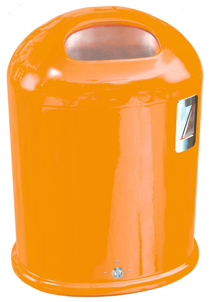 Abfallbehälter oval mit Ascher, Vol. 45 l, aus Stahlblech, BxTxH 425x330x590 mm, mit Federklappe, RAL 2000