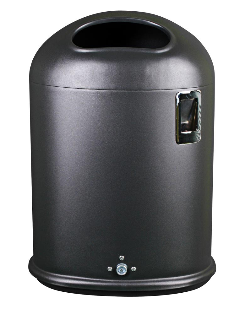 Abfallbehälter oval mit Ascher, Vol. 45 l, aus Stahlblech, BxTxH 425x330x590 mm, ohne Federklappe, DB703
