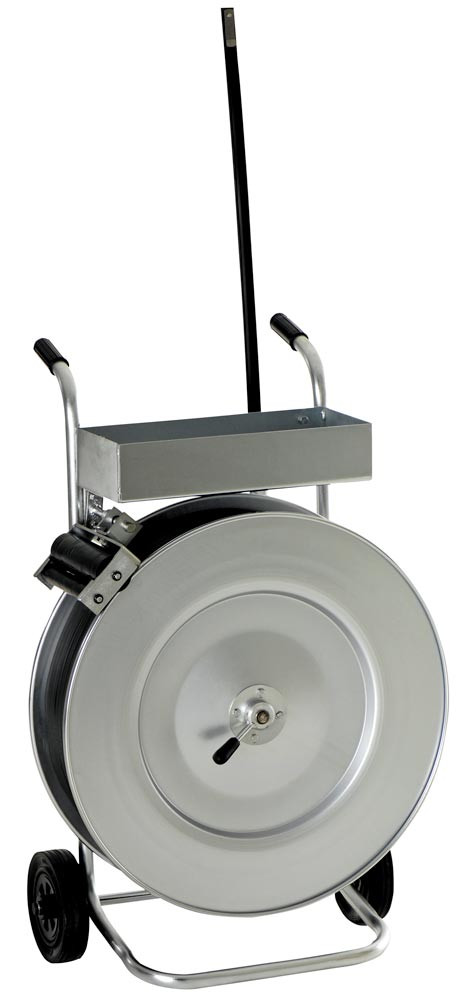 Abroll-Wagen, fahrbar, verzinkt, für PP + PET Kunststoffbänder, Rollen 406 mm Kern