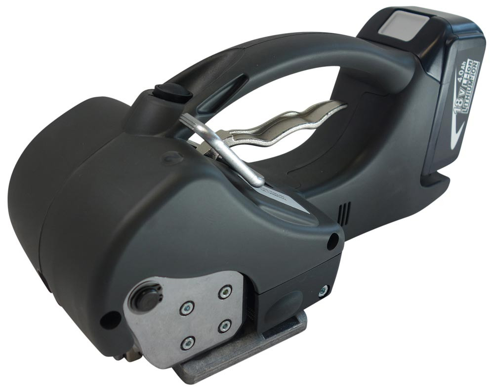 · Geeignet für jede Standardanwendung, ob horizontal oder vertikal · Für Kunststoffbänder und PET Kunststoffbänder · Verbindung der Bänder erfolgt durch Vibrationsschweißverfahren und ergeben somit einen sicheren Verschluß ( ca. 75 % Verschlussfestigkeit ) · Spannkraft und die Schweißzeit lassen sich über ein Display einfach einstellen · Band muss im Duplex Verfahren eingelegt werden, mittels Knopfdruck wird das Band gespannt und mittels umlegen eines Hebels wird der Verschluß erzeugt · Lieferumfang: Umreifungsgerät, Ladestation und Akku