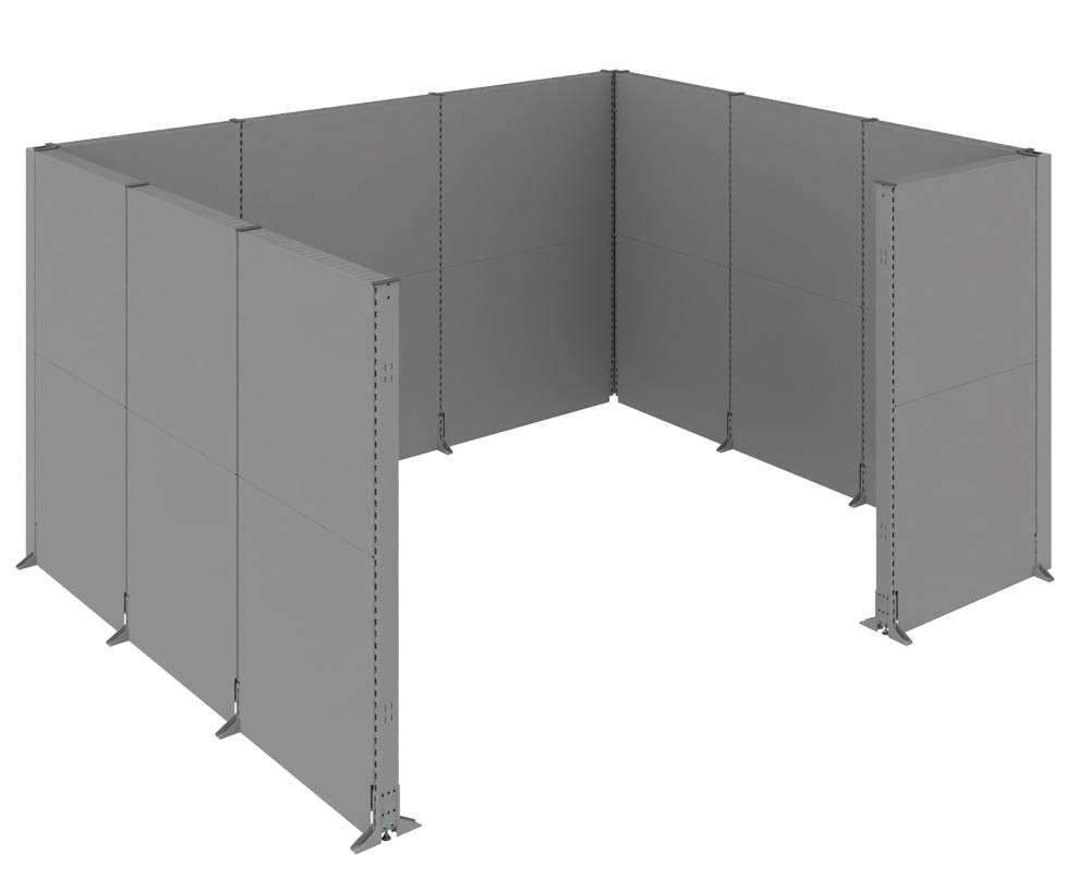 Akustik-Stellwand, BxTxH 3730x3230x3000 mm, ohne Tür, ohne Dach, RAL 7037 staubgrau