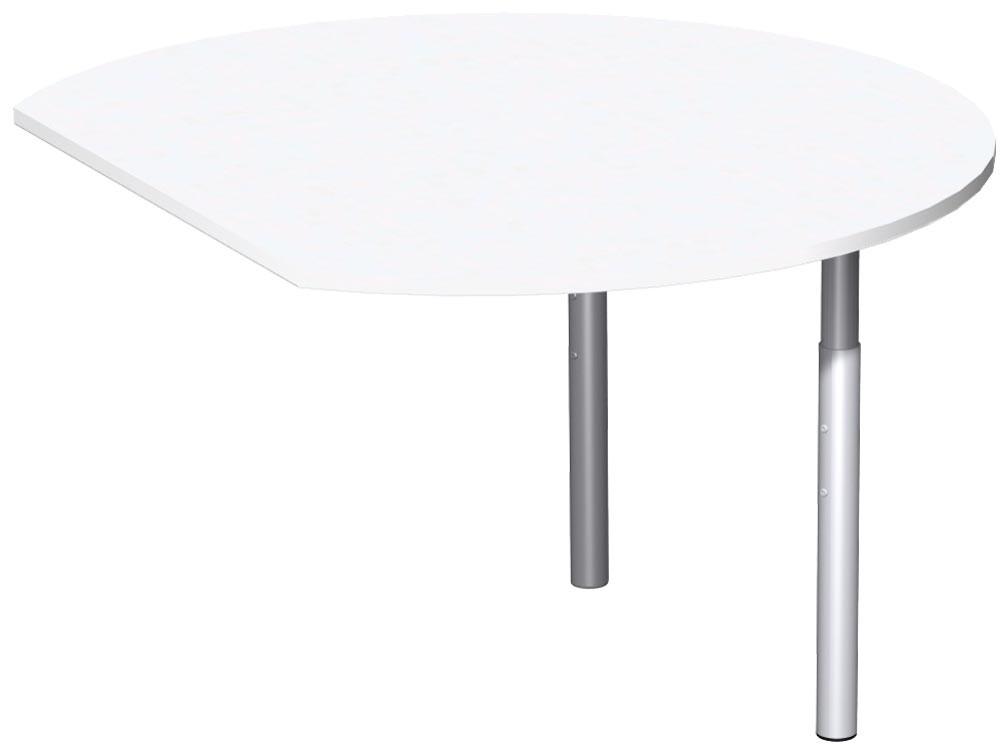 Anbautisch, rund, BxTxH 1200x1047x680-820 mm, höhenverst., Platte weiß, Stützfuß silber, inkl. Montagesatz