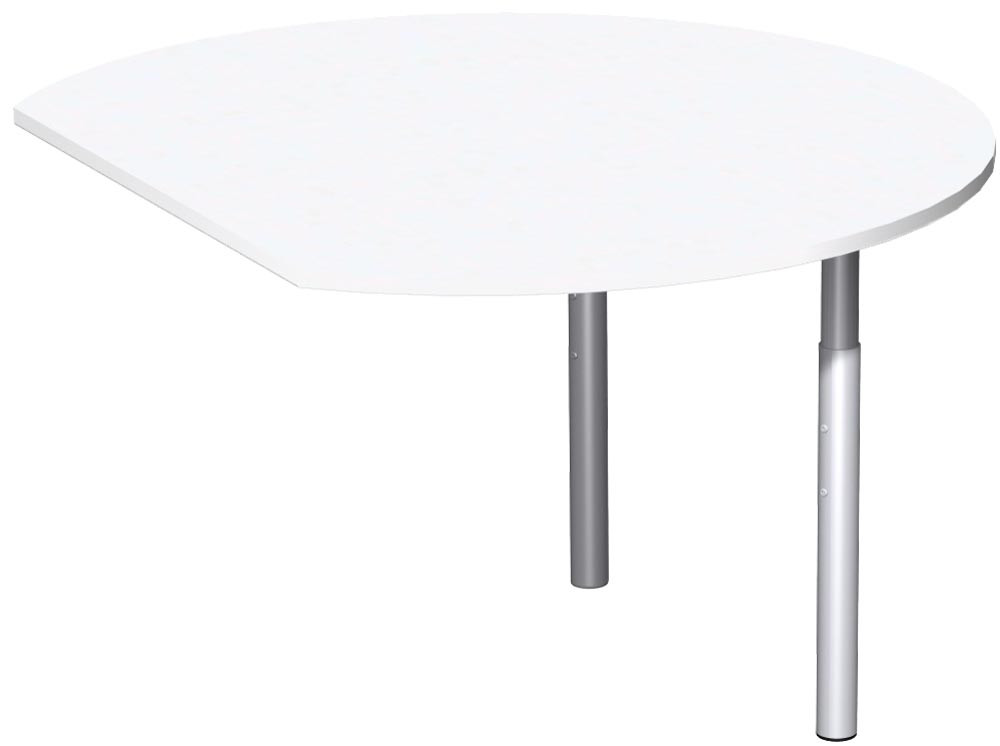 Anbautisch, rund, BxTxH 800-1200x1047x680-800 mm, höhenverstellbar, Platte weiß, Stützfuß silber