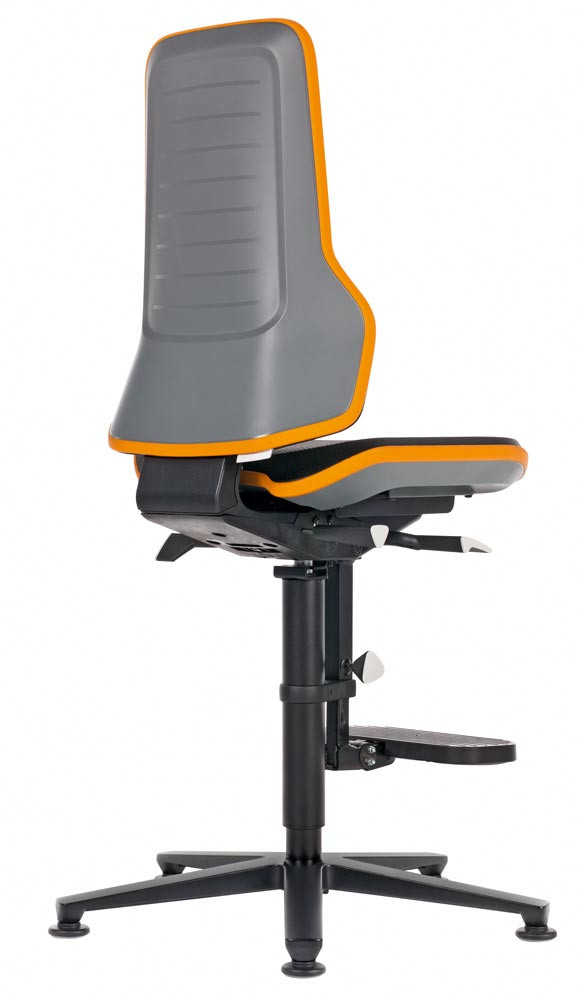 Arbeitsdrehstuhl, Permanentkontakt, mit Gleiter und Aufstieghilfe, Flexband orange, Basisstuhl ohne Polster, Sitz Höhe 590-870 mm, DIN 68877