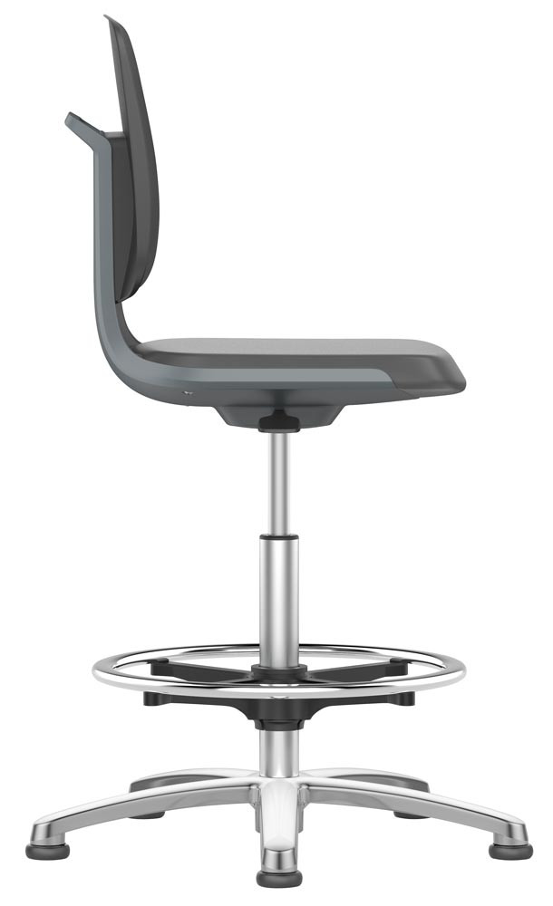 Arbeitsdrehstuhl mit Flex-Rückenlehne u. Sitzkante, Sitzschale anthrazit, Sitz Stoff schwarz, Gleiter u. Fußring, Sitz Höhe 520-770 mm