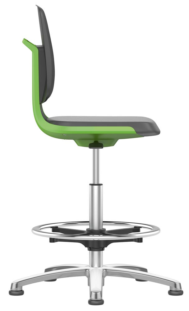 Arbeitsdrehstuhl mit Flex-Rückenlehne u. Sitzkante, Sitzschale grün, Sitz Kunstleder schwarz, Gleiter u. Fußring, Sitz Höhe 520-770 mm