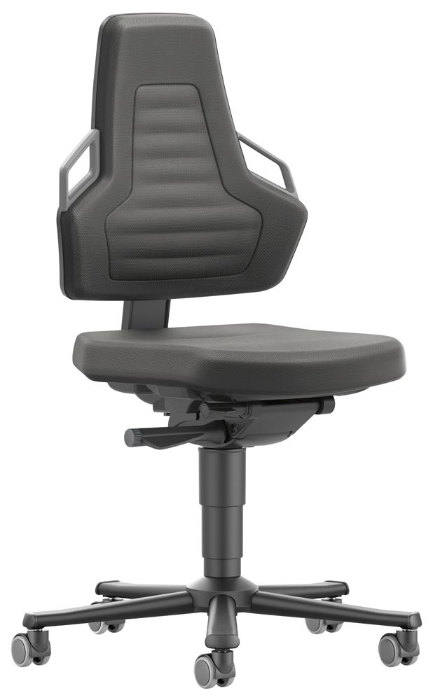 Arbeitsdrehstuhl mit autom. Gewichtregulierung, Sitz Integralschaum schwarz, Griffe grau, Rollen, Sitz Höhe 450-600 mm E6042559