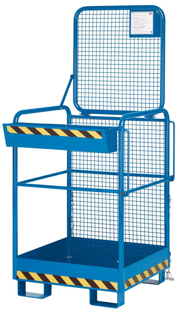 Arbeitskorb mit Aufnahme von der breiten Seite, Zulässig für 2 Personen, BxTxH 800x800x1900 mm, Traglast 240 kg, RAL 5010 enzianblau