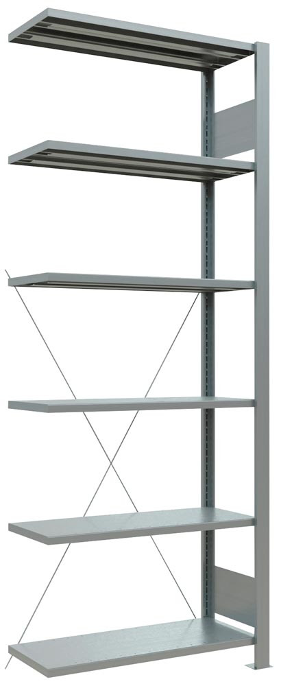Archiv-Steckregal, Anbaufeld, RAL 7035 lichtgrau, 6 Fachböden, ohne Anschlagleiste, Fachlast 85 kg, BxTxH 750x300x2000 mm