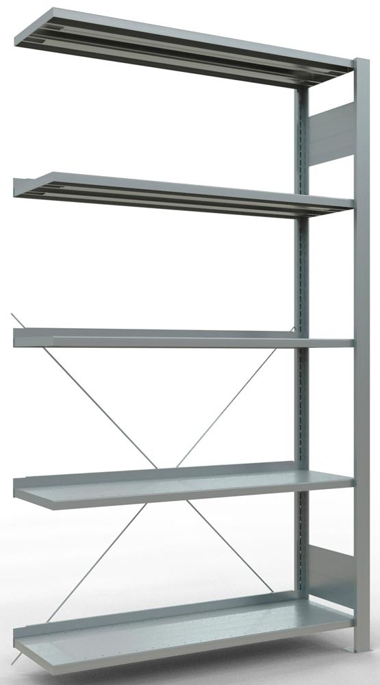 Archiv-Steckregal, Anbaufeld, verzinkt, 5 Fachböden, mit Anschlagleiste, Fachlast 85 kg, BxTxH 1000x300x1800 mm