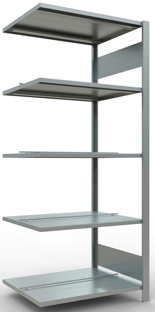 Archiv-Steckregal, Anbaufeld, verzinkt, 5 Fachböden, mit Mittelanschlag, Fachlast 150 kg, BxTxH 750x600x1800 mm