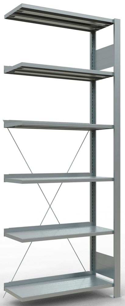 Archiv-Steckregal, Anbaufeld, verzinkt, 6 Fachböden, mit Anschlagleiste, Fachlast 85 kg, BxTxH 750x300x2000 mm