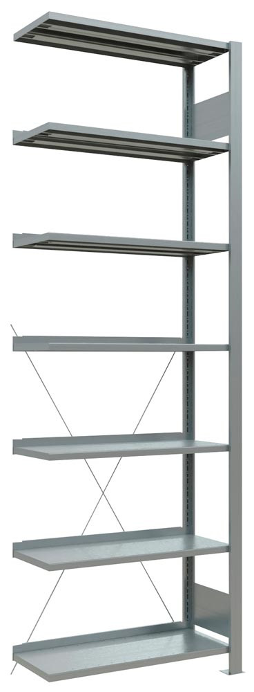 Archiv-Steckregal, Anbaufeld, verzinkt, 7 Fachböden, mit Anschlagleiste, Fachlast 85 kg, BxTxH 750x300x2300 mm