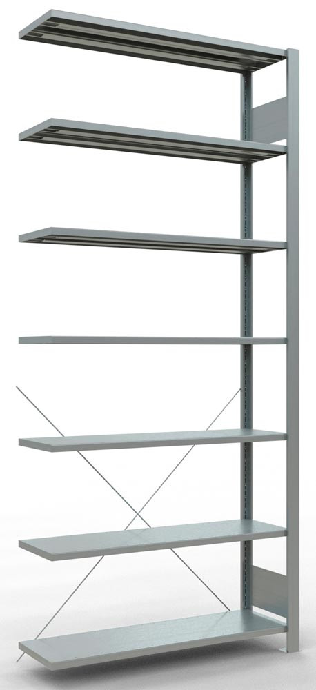 Archiv-Steckregal, Anbaufeld, verzinkt, 7 Fachböden, ohne Anschlagleiste, Fachlast 85 kg, BxTxH 1000x300x2300 mm