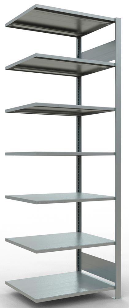 Archiv-Steckregal, Anbaufeld, verzinkt, 7 Fachböden, ohne Mittelanschlag, Fachlast 150 kg, BxTxH 750x600x2300 mm