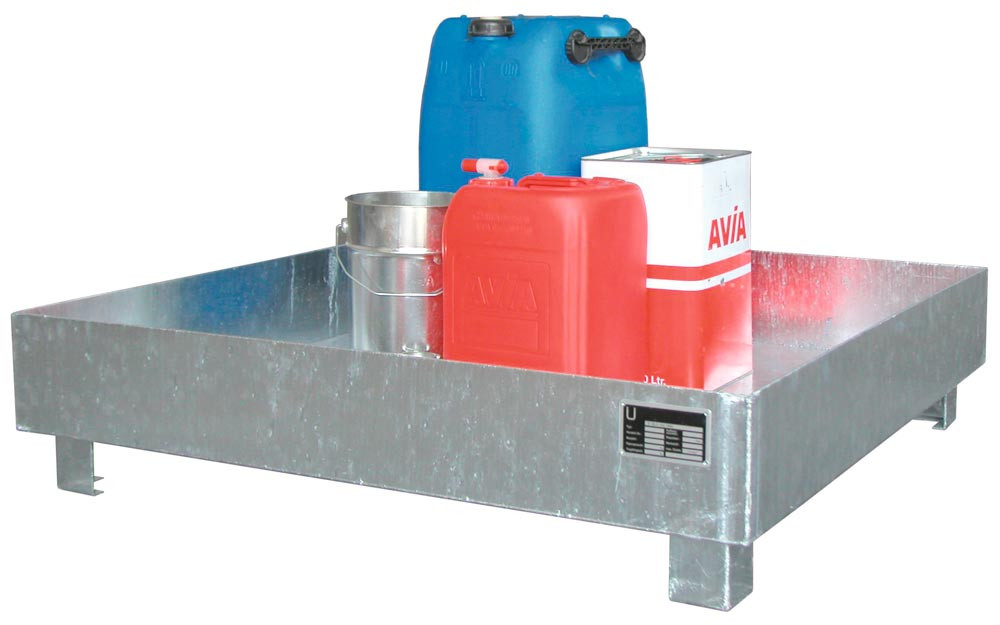 Auffangwanne, CO2 neutral, BxTxH 1200x1200x290 mm, Auffangvolumen 230 l, ohne Gitterrost, verzinkt E6423098