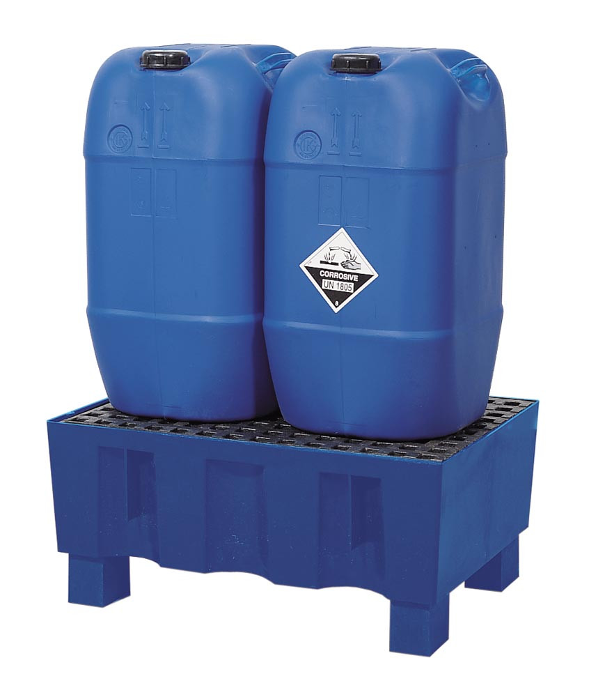 ∙ Zur sicheren und vorschriftsmäßigen Lagerung wassergefährdender Flüssigkeiten aller Gefährdungsklassen ∙ Hohe Beständigkeit gegen Säuren, Laugen, Öle und andere Stoffe ∙ Mit allgemeiner bauaufsichtlicher Zulassung des DIBt-Berlin ∙ Auffangvolumen 60 l ∙ Nicht zur Lagerung brennbarer Flüssigkeiten zugelassen
