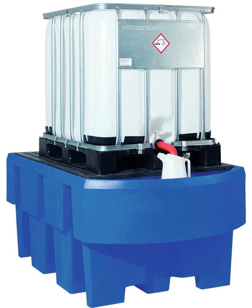 Auffangwanne aus Polyethylen für IBC, verz. Gitterrost, Volumen 1000 l, BxTxH 1280x1660x870 mm, für 1 IBC, blau E1988268
