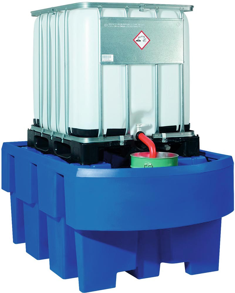Auffangwanne aus Polyethylen für IBC, ohne Gitterrost, Volumen 1000 l, BxTxH 1280x1660x870 mm, für 1 IBC, blau E1988267