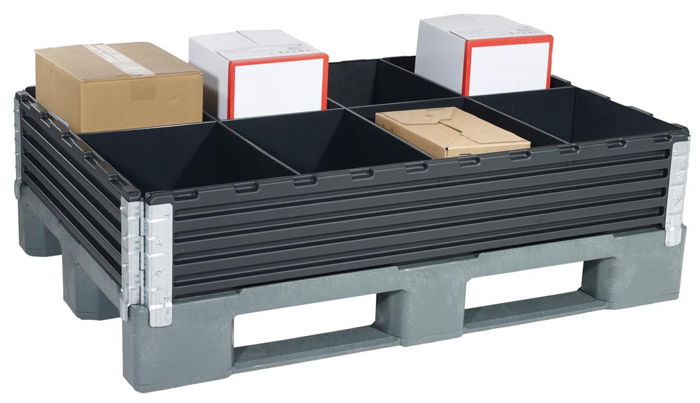 Aufsatzrahmen-Raumteiler PE-RE schwarz, BxTxH 800x1200x200 mm, 8-fach, VE 2 Stück E1906419