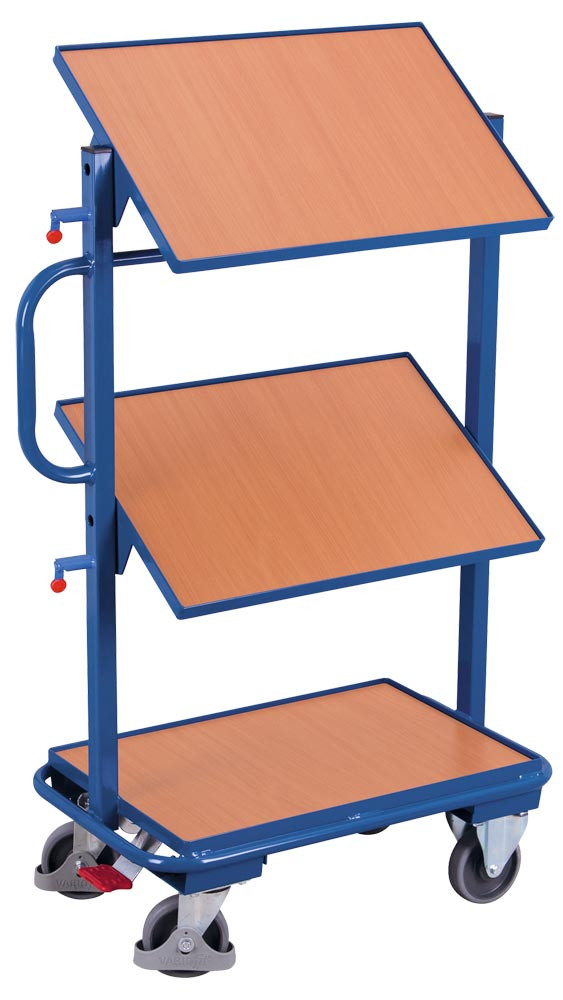 Beistellwagen, 3 Holzböden (2xneigbar, 1xfest), Ladefläche LxB 610x410 mm, Außenmaße LxBxH 815x455x1185 mm, Traglast 200 kg E1320625
