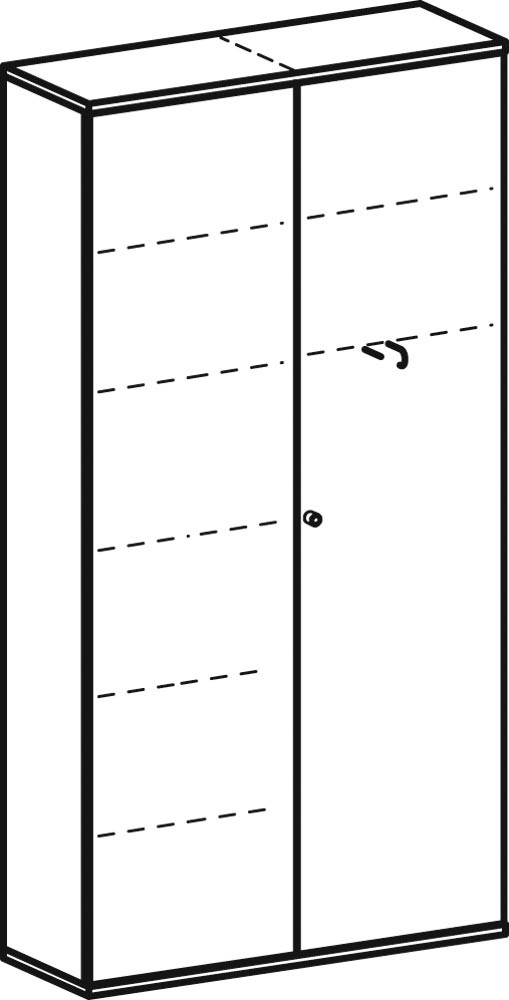 Büro-Flügeltürenschrank, BxTxH 1000x425x2304 mm, 6 OH, Mitteltrennwand, 5 Böden, Garderobenhalter, Schloss, weiß