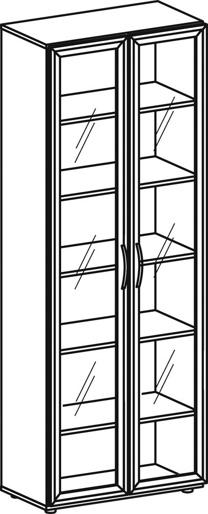 Büro-Flügeltürenschrank, BxTxH 800x420x2160 mm, 6 OH, 5 Böden, Glastüren, Justierfüße, buche
