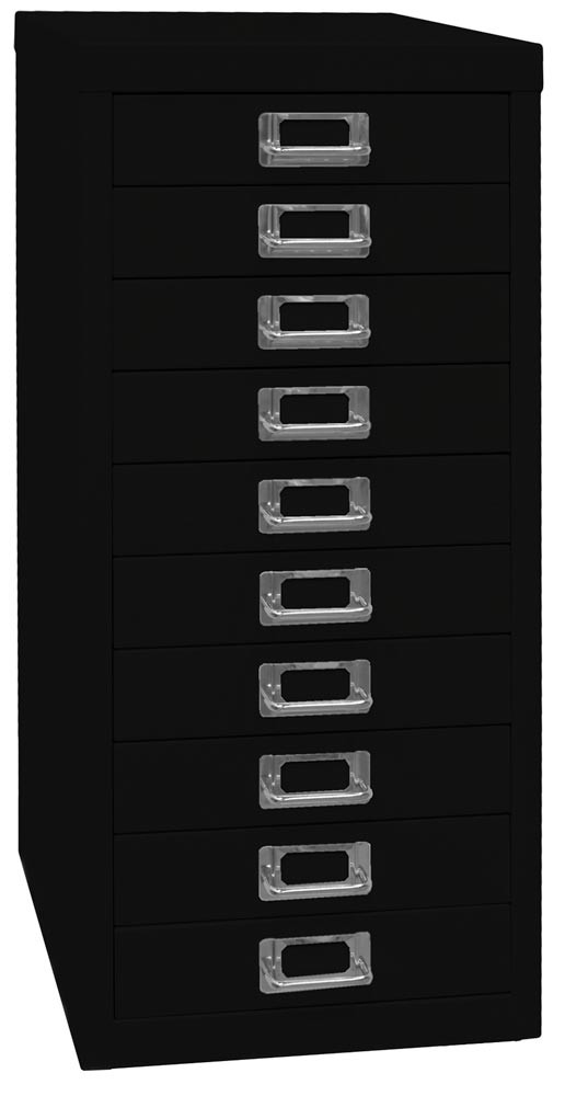 Büro-Schubladenschrank, BxTxH 279x380x590 mm, 10 Schubladen 51 mm, DIN A4, schwarz