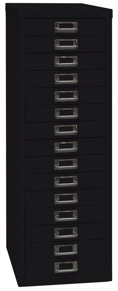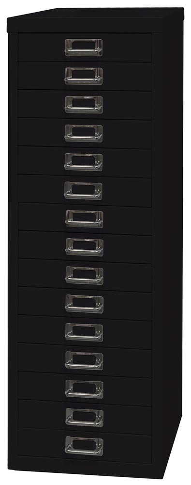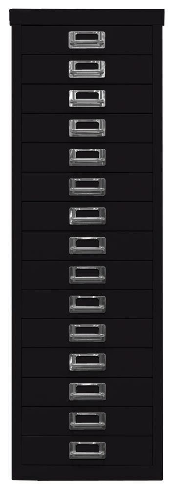 Büro-Schubladenschrank, BxTxH 279x380x860 mm, 15 Schubladen 51 mm, DIN A4, schwarz