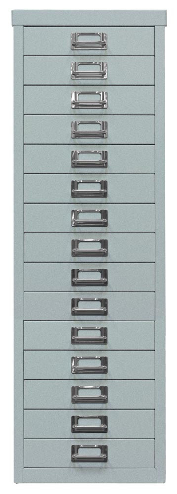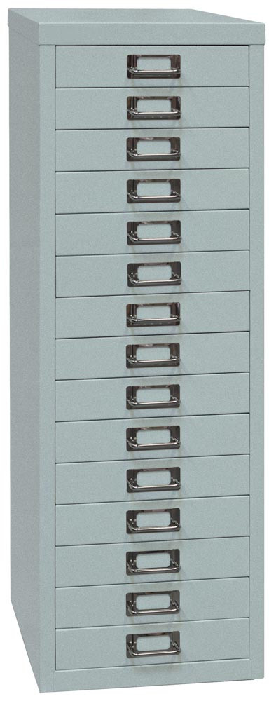 Büro-Schubladenschrank, BxTxH 279x380x860 mm, 15 Schubladen 51 mm, DIN A4, silber