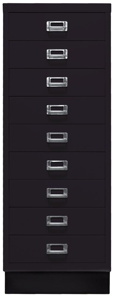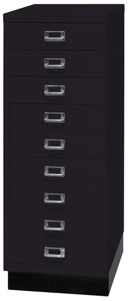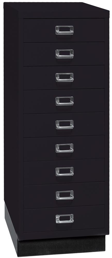 Büro-Schubladenschrank, BxTxH 349x432x940 mm, 9 Schubladen 87 mm, DIN A3, Sockel 80 mm hoch, schwarz