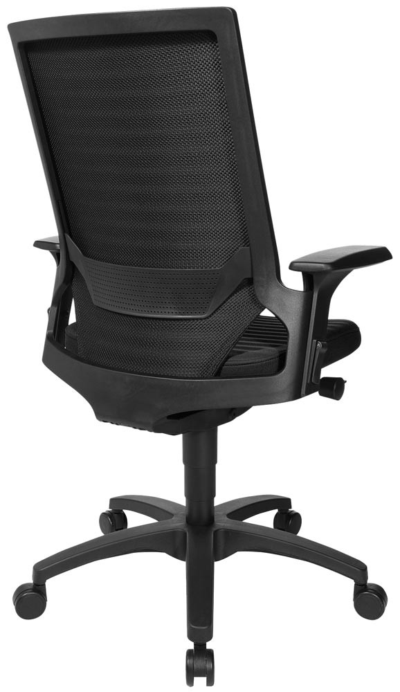 ∙ Gepolsterte 3D-Rückenlehne mit atmungsaktiver Netz-/Polsterkombination in Rillenoptik in stabilem Kunststoffrahmen, rückseitig höhenverstellbare Lendenwirbelstütze aus Kunststoff