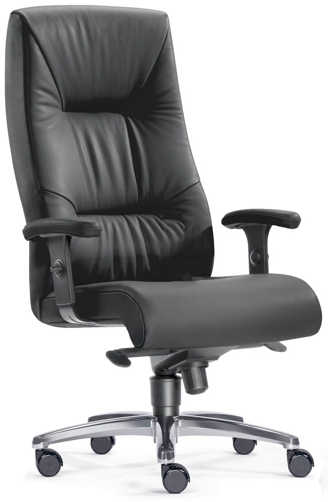 Chefsessel Big, Größe L, Sitz-BxTxH 500x500x420-530 mm, Lehnenh. 750 mm, Synchronm., TL 120 kg, Armlehnen, Alu-Fußkreuz, Lederbezug schwarz