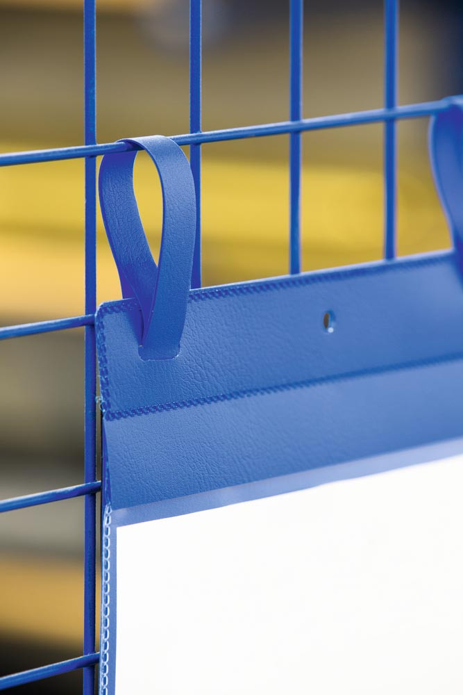 · Mit pfeilförmigen Laschen zur Befestigung an Lager- und Transportboxen · Starker Halt an beweglichen Transportbehältern wie Gitterboxen · Farbige Rückenfolie und transparente Vorderfolie aus strapzierfähigem Polypropylen · Scannertauglich und dokumentenecht · Geeignet für den Außeneinsatz durch Staub- und Regenschutzklappe · Schneller Austausch der Einsteckschilder · Dokumentenwechsel ohne Entfernen der Tasche · VE 50 Stück