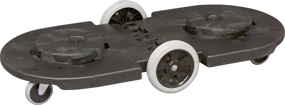 · Aus stabilem schwarzem Polyethylen · 4 Lenkrollen für leichtes Handling · Spurlose Gummibereifung · Traglast 226 kg · Die Kunststofftonnen werden fest mit dem Fahrwagen verbunden, um auch schwer befüllte Behälter sicher zu transportieren