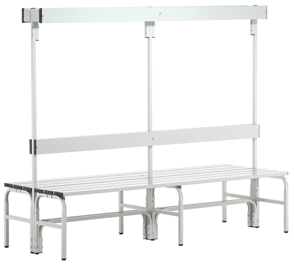 Doppelseitige Garderobenbank, Hakenleiste, ohne Schuhrost, Edelstahl/Alu, TxH 725x1650 mm, Länge 1500 mm, RAL 7035