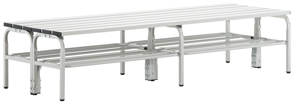 Doppelseitige Garderobenbank, mit Schuhrost, Edelstahl/Alu, TxH 700x450 mm, Länge 1500 mm, RAL 7035