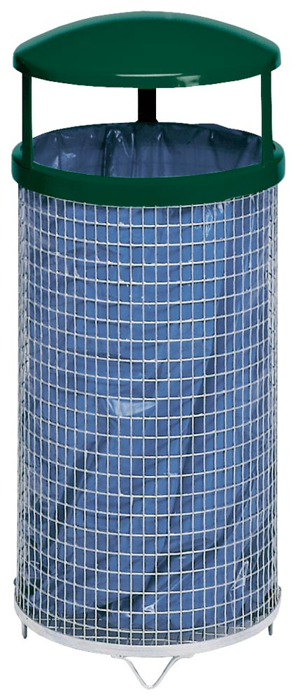 Drahtkorb, feuerverzinkt, aus punktgeschweißtem Gitter, Maschung 15x25 mm, mit grün Kopfteil RAL 6005, Durchm.xH 405x920 mm, KorbVol. ca. 75 E816130