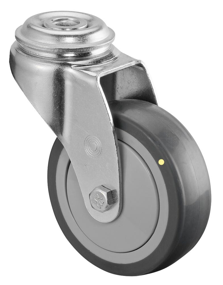 ESD-Apparaterolle, Lenkrolle, Gummi thermoplastisch grau, Durchm. 50 mm, Traglast 50 kg, Kugellager, Rückenloch