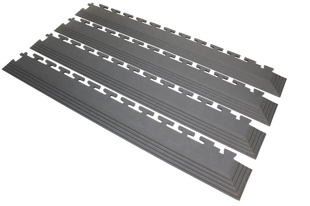 Ecke zu Arbeitsplatzfliese, 500x140 mm, Stärke 5 mm, aus recyceltem PVC, Oberfläche Noppenoptik, Farbe schwarz, VE 4 Stück