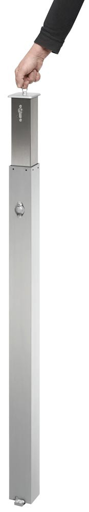 Edelstahl-Sperrpfosten, mit Bodenhülse zum Einbetonieren, manuell versenkbar, flache Abdeckung, mit PZ-Schloss, 70x70mm, Höhe ü. Flur 900 mm
