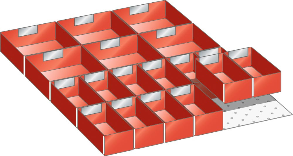 Einsatzkästen, Fronthöhe 50 mm, 12 Kästen 150x75 mm, 6 Kästen 150x150 mm, Schubladennutzgröße BxT 459x612 mm E876166