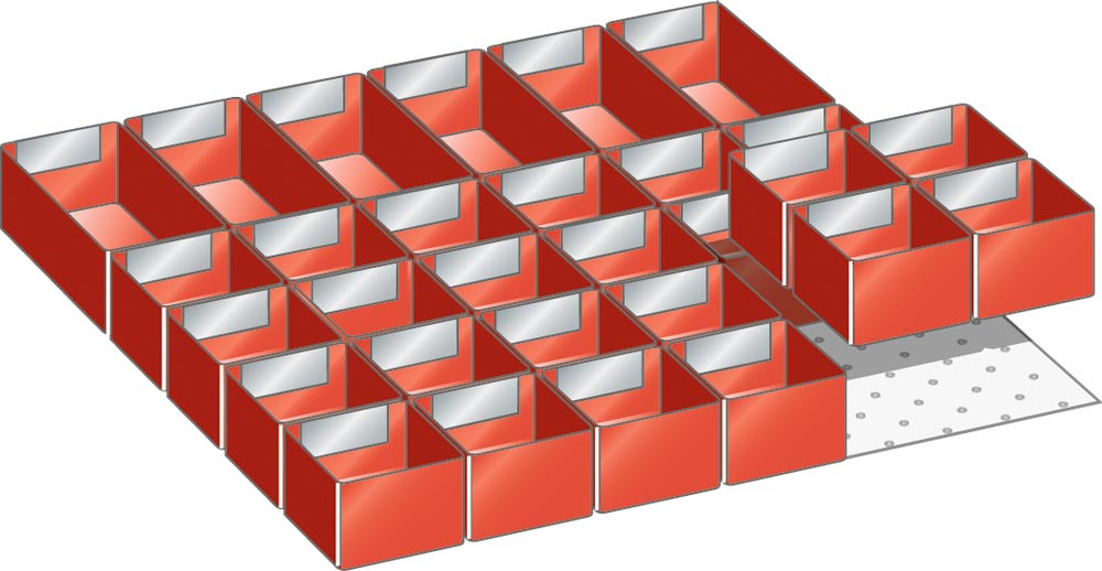 Einsatzkästen, Fronthöhe 75 mm, 24 Kästen 75x75 mm, 6 Kästen 150x75 mm, Schubladennutzgröße BxT 459x 459 mm E876134