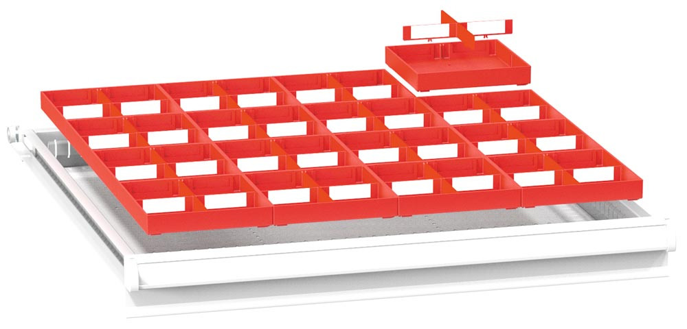 Einteilungsmaterial-Set, 16 Boxen 153x153x50 mm, 16 große Trenneinsätze, 32 kleine Trenneinsätze, für FH 75 mm, passend für Gehäusegr. BxT 731x753 mm