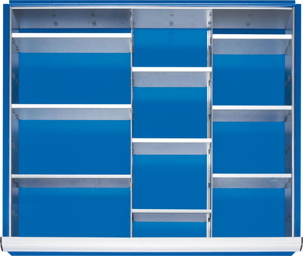 Einteilungssortiment für Schubladen BxT 680x560 mm: 2 Trenn- und 9 Steckwände, für Fronthöhe 120/150 mm