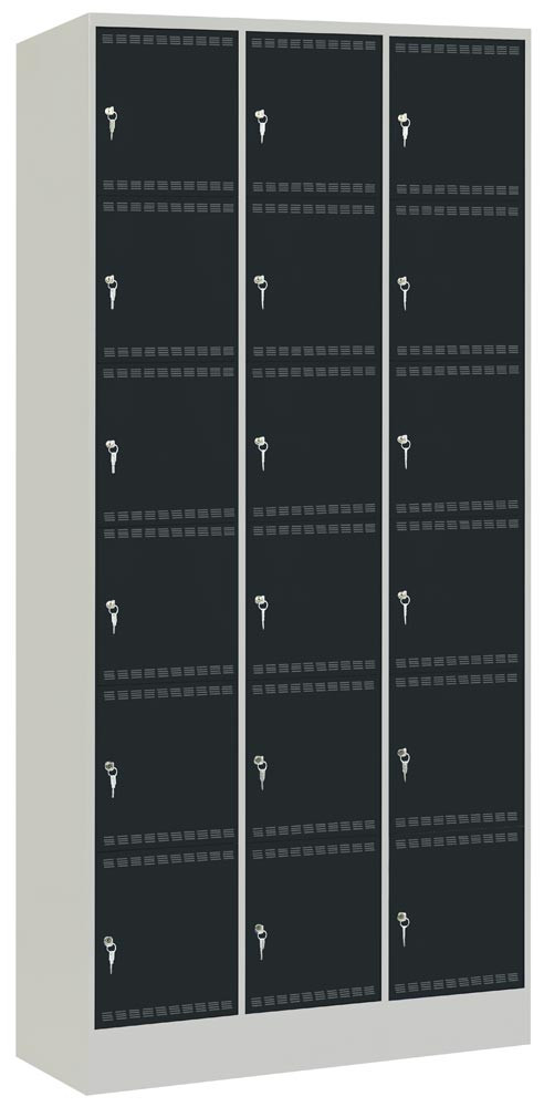 Elektro-Fächerschrank, BxTxH 905x582x1995 mm, 18 Fächer, Abteil-BxH 300x300 mm, RAL 7035/7016 lichtgrau/anthrazit