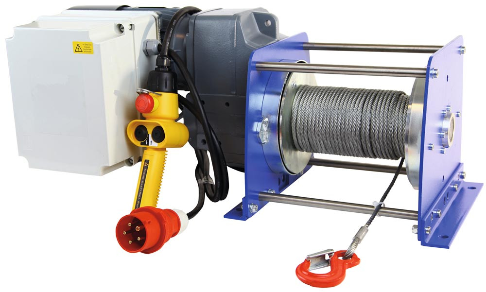 Elektroseilwinde mit Hubseil 50 m, Betriebsendschalter, Abdeckung, Traglast 500 kg, Hubseil 50 m, Motorleistung 0,75 kW, 230 V