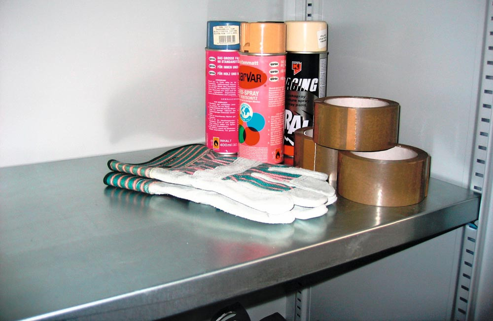 Fachboden, 30 mm stark, inkl. 4 Bodenträgern, für Flügel- und Falttürenschrank, Breite 1000 mm, Tiefe 400 mm, verzinkt
