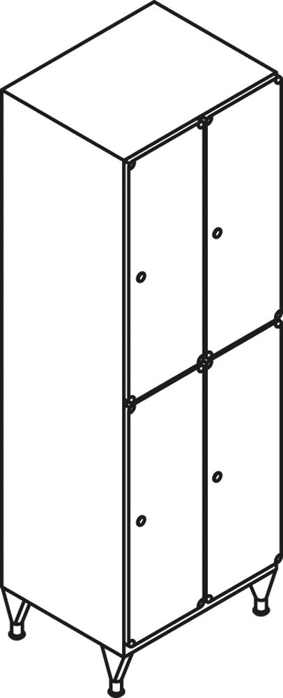 Fächerschrank, 2x2 Fächer, Abt. B 300 mm, Selbstbelüftungskonzept, BxTxH 600x525x1980 mm, RAL 7035/5010 E1980213